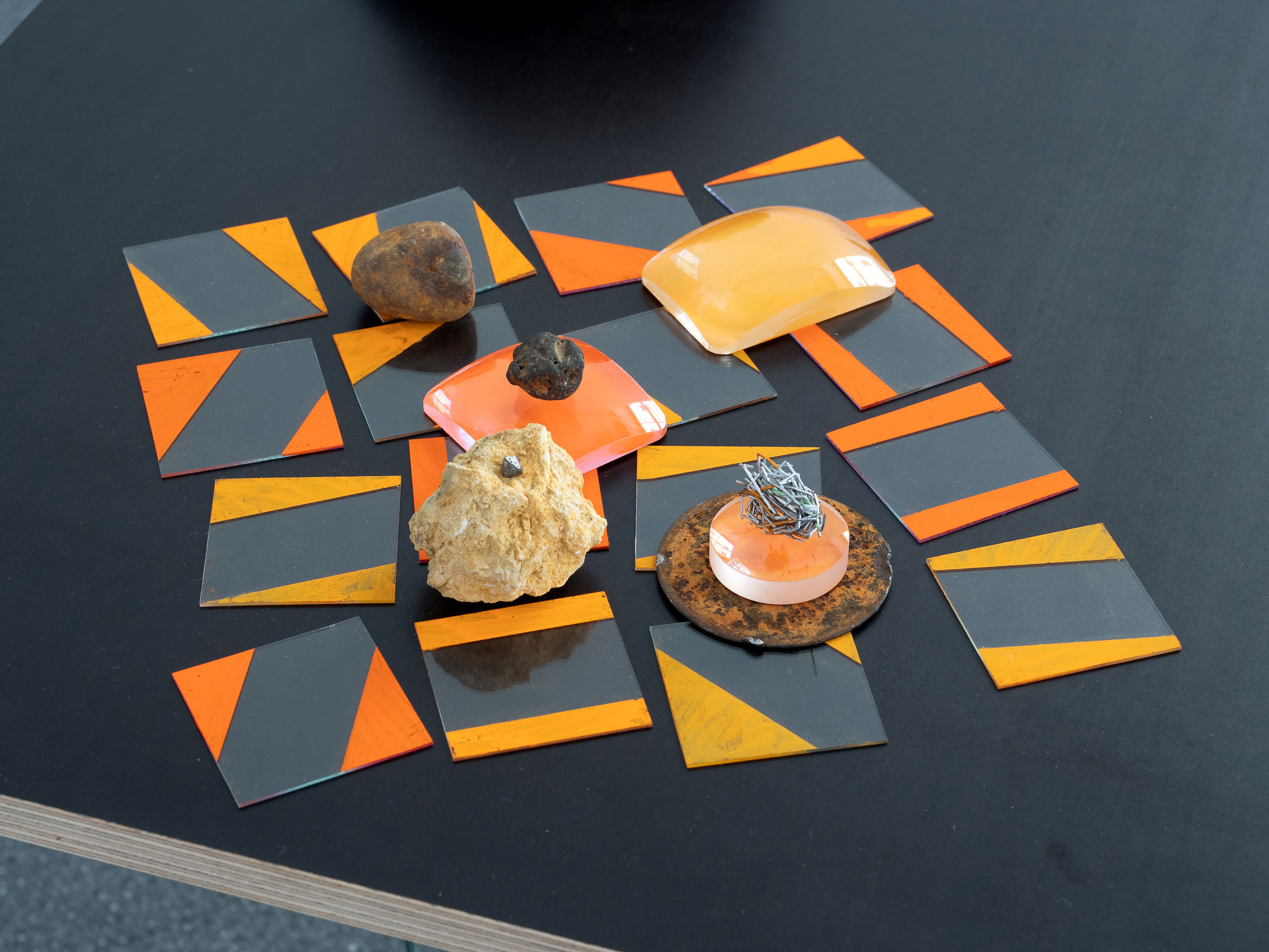pigments, sand, stone, resin, magnet, asteel, paper, canvas, glass and wood