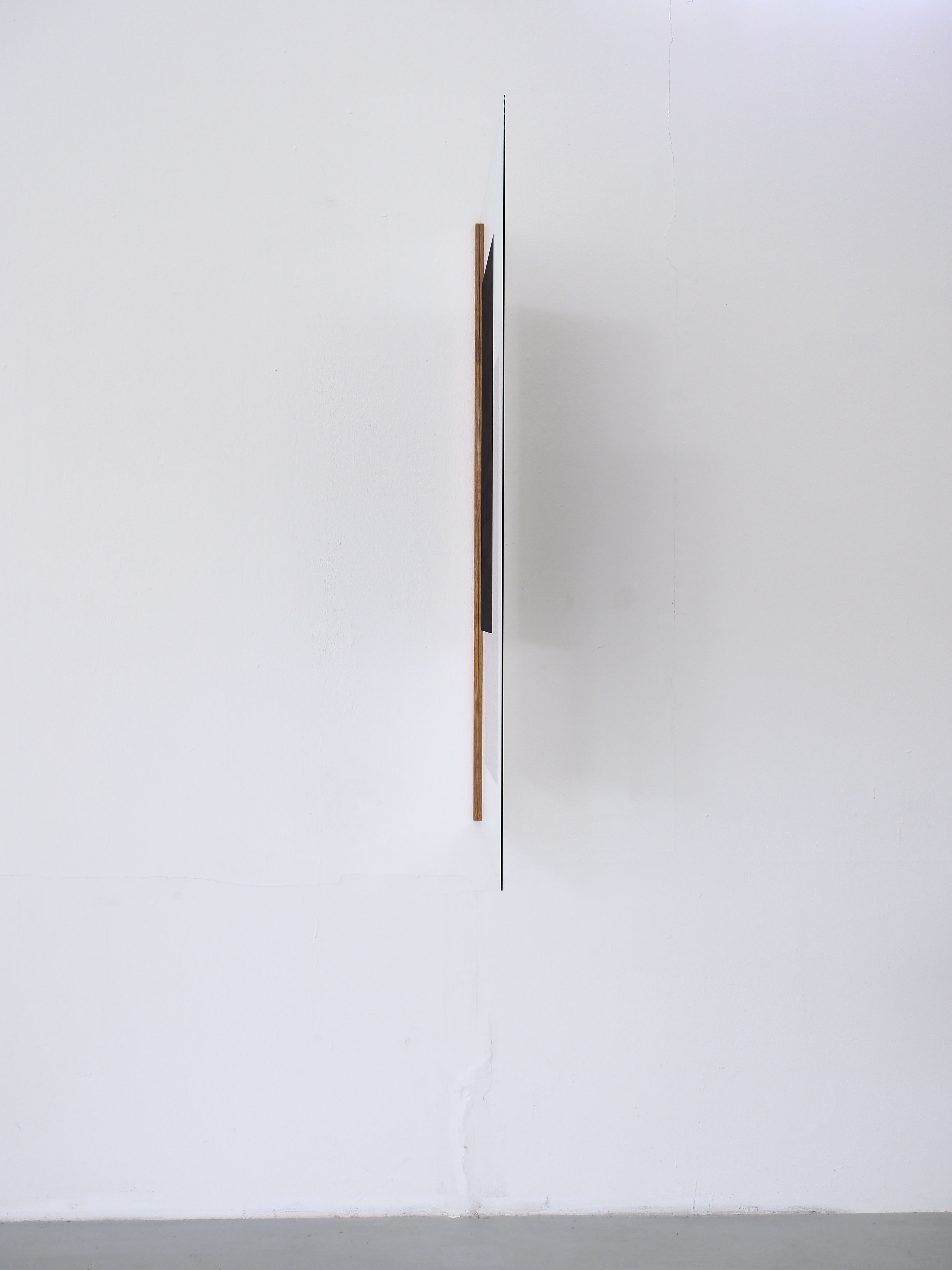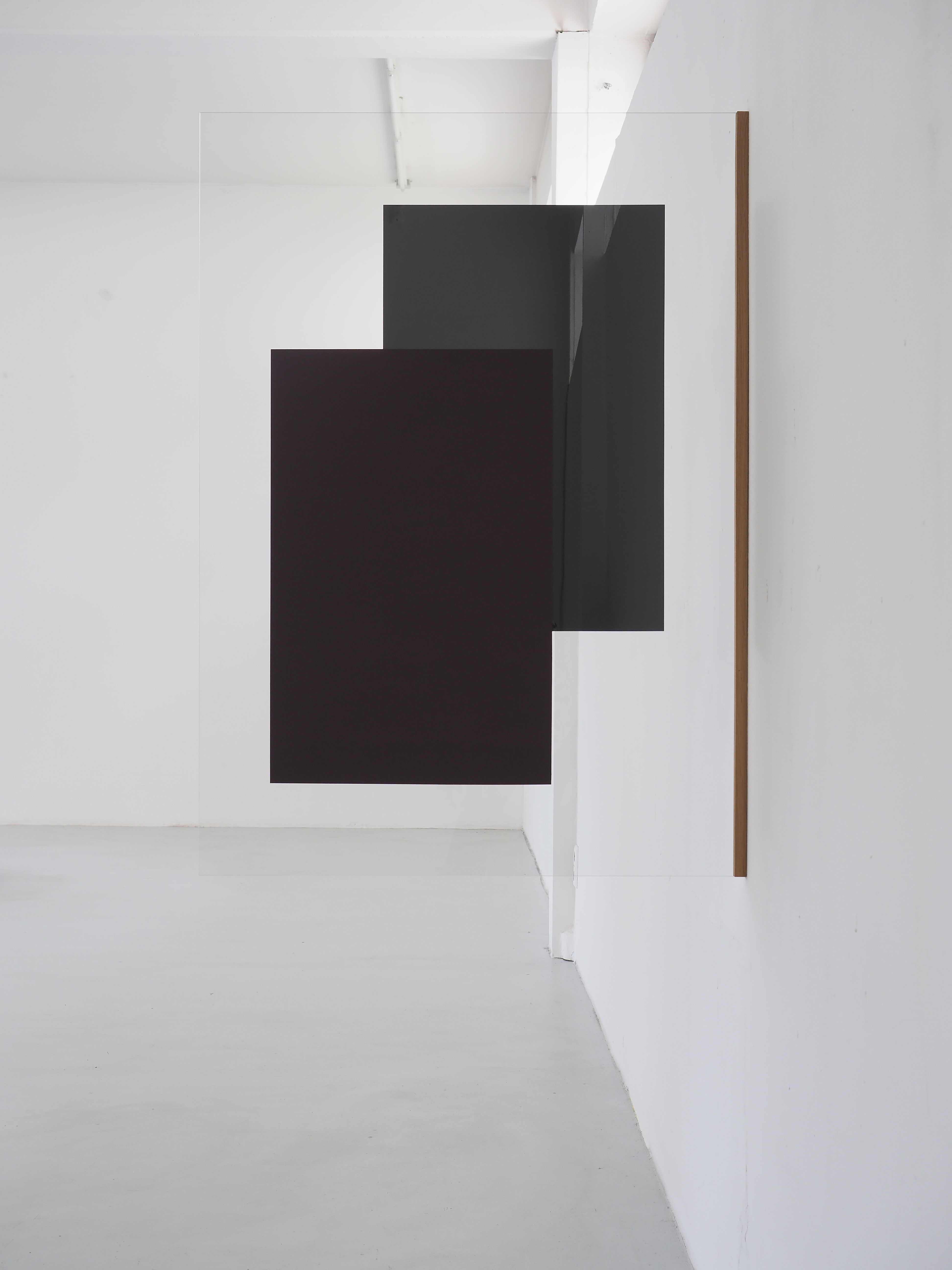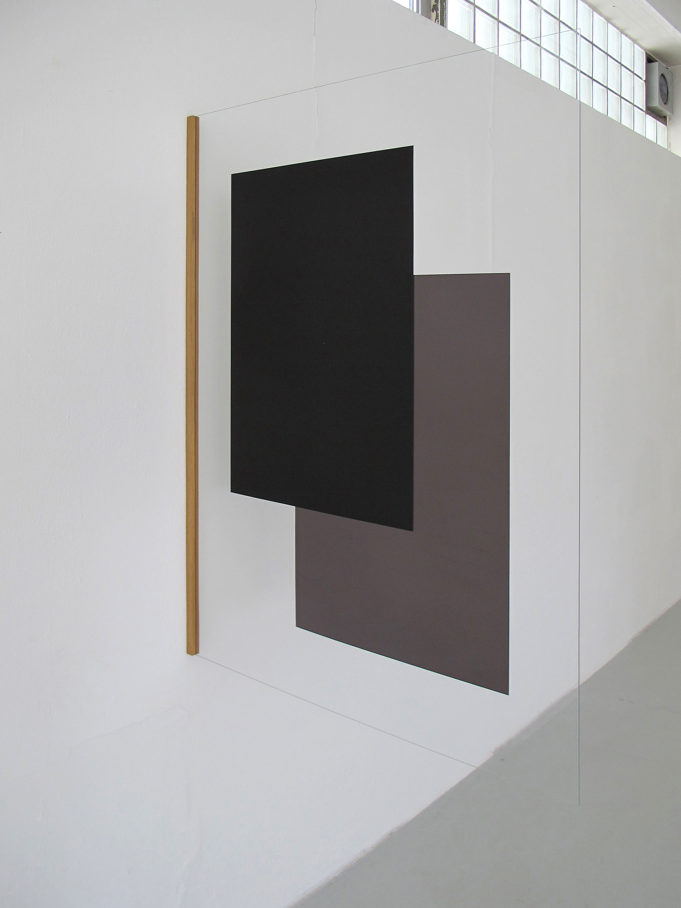 Caput Mortuum and Iron Oxide Black on glas, wood 125 x 0.3 x 90 cm